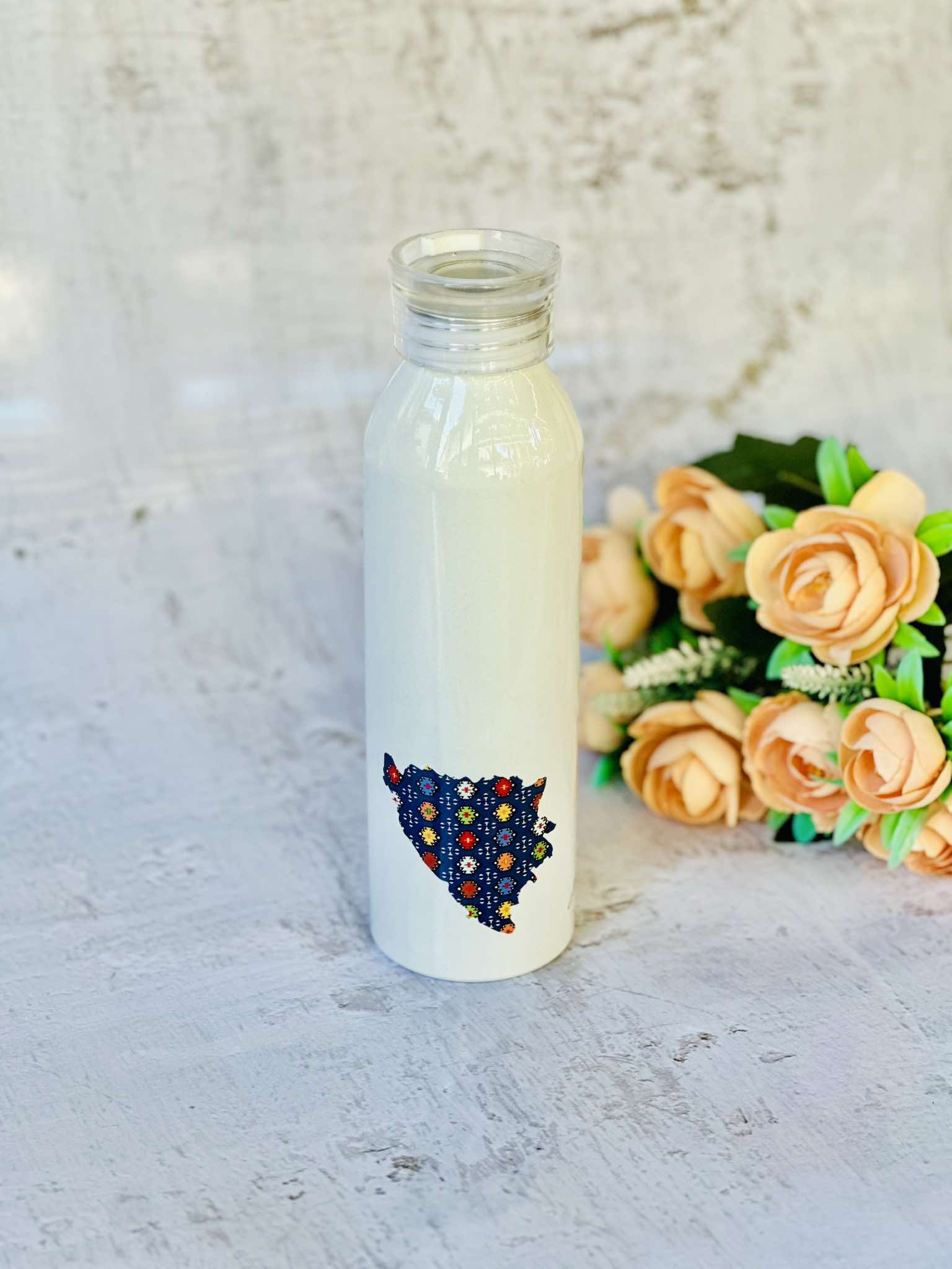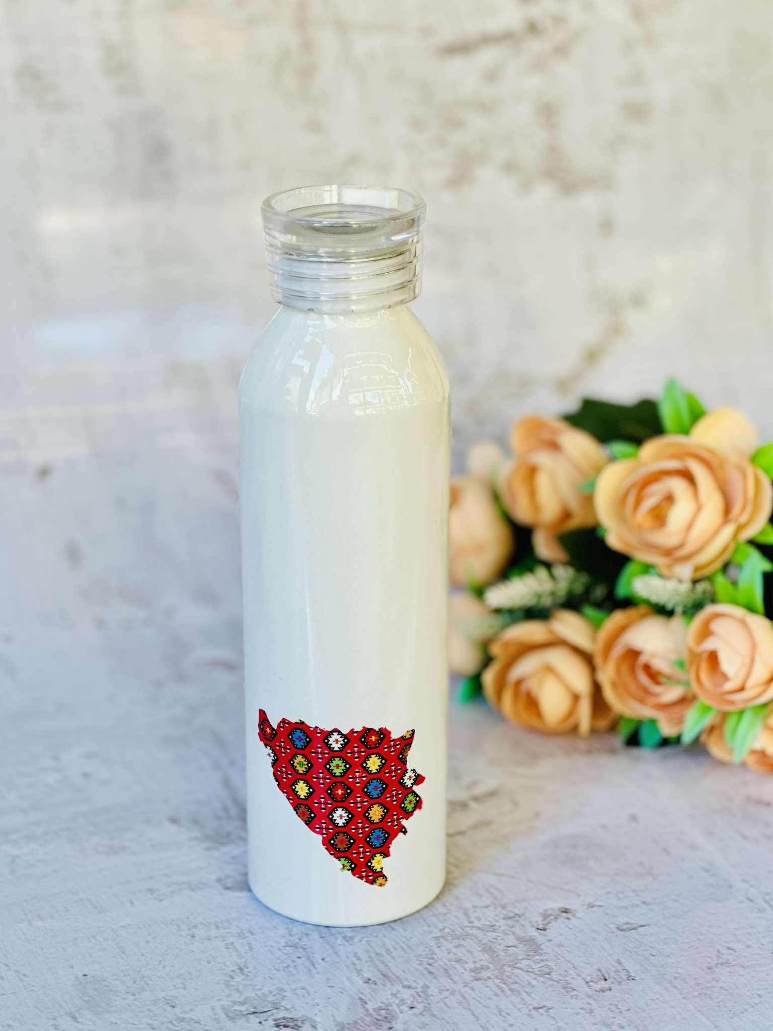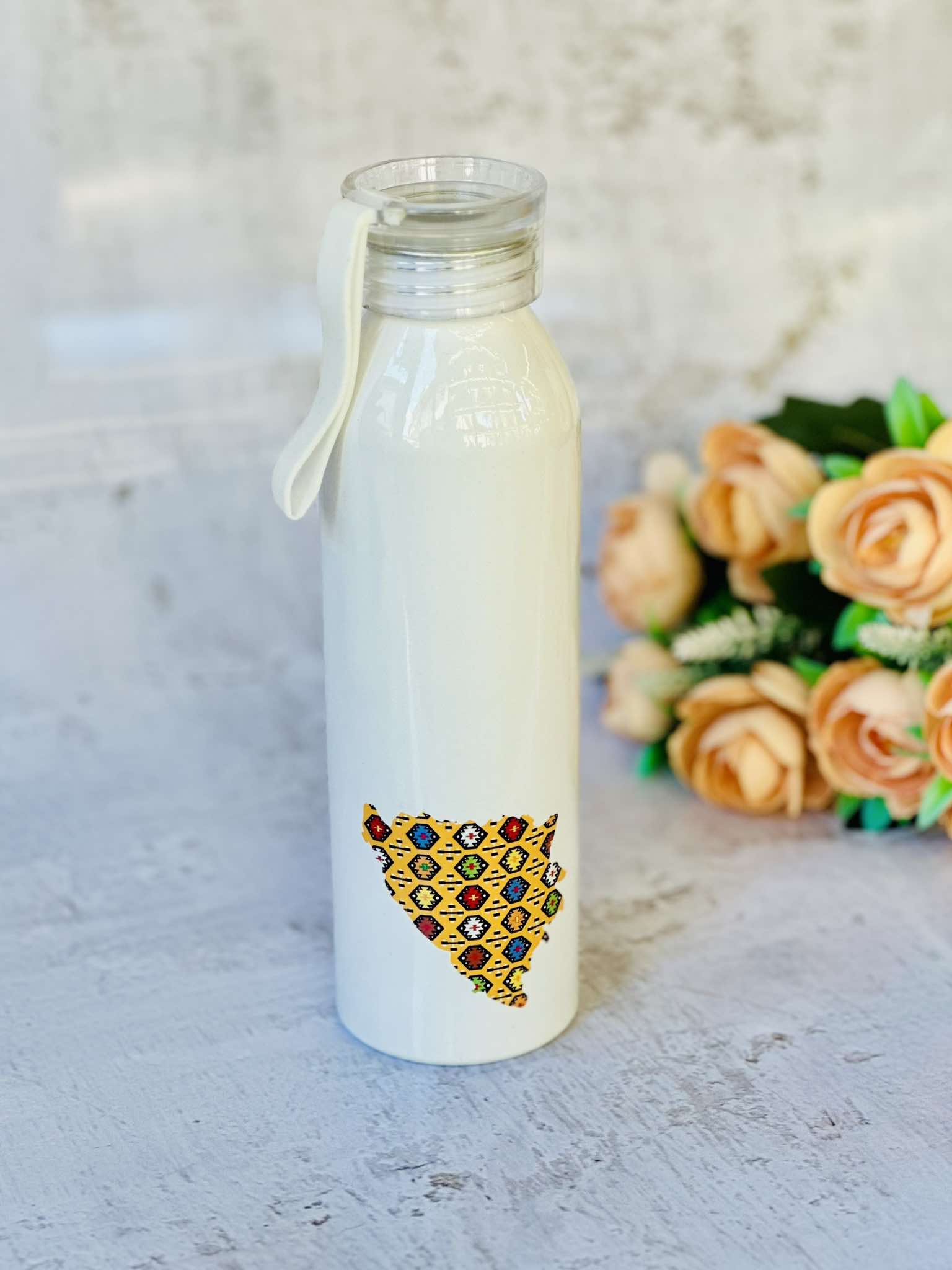 Izrazi pripadnost bez ijedne riječi, samo uz pomoć sportske boce. Ključne karakteristike: 🍶 Robustan dizajn: Izrađena od visokokvalitetnih materijala, naša termos boca je izdržljiva, ali i lagana, idealna za nošenje u torbi, ruksaku ili automobilu. Zapremina boce je 650 ml. 🧽 Održavanje: Pogodna je za mašinsko pranje. 🎁 Izvanredan poklon: Ukoliko tražite nešto što biste ponijeli sa sobom u inostranstvo, a pritom nemate mnogo mjesta u svom prtljagu – termos boca je odlična ideja. Također idealan je poklon za ljubitelje umjetnosti, bosanske tradicije, kulture i zdravog stila života.