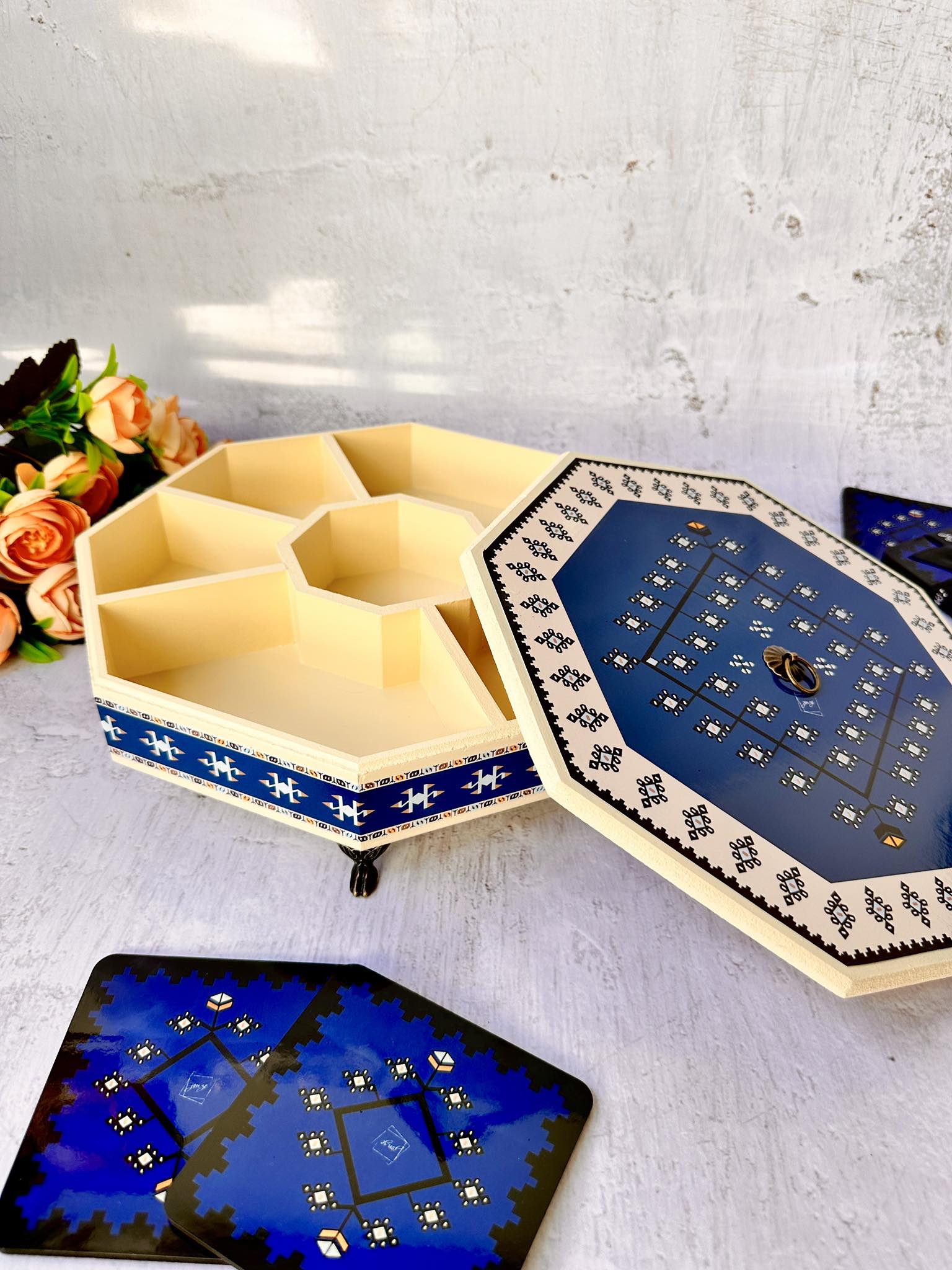 🗂️ Organizer: Ovaj bombonjer učiniti će vaš sto elegantnijim i bogatijim. Njegove razdjelne pregrade omogućavaju vam da organizujete različite poslastice ili sitnice, dok mu poklopac čijem smo dizajnu posvetili posebnu pažnju pruža zaštitu od prašine i ostalih vanjskih uticaja.