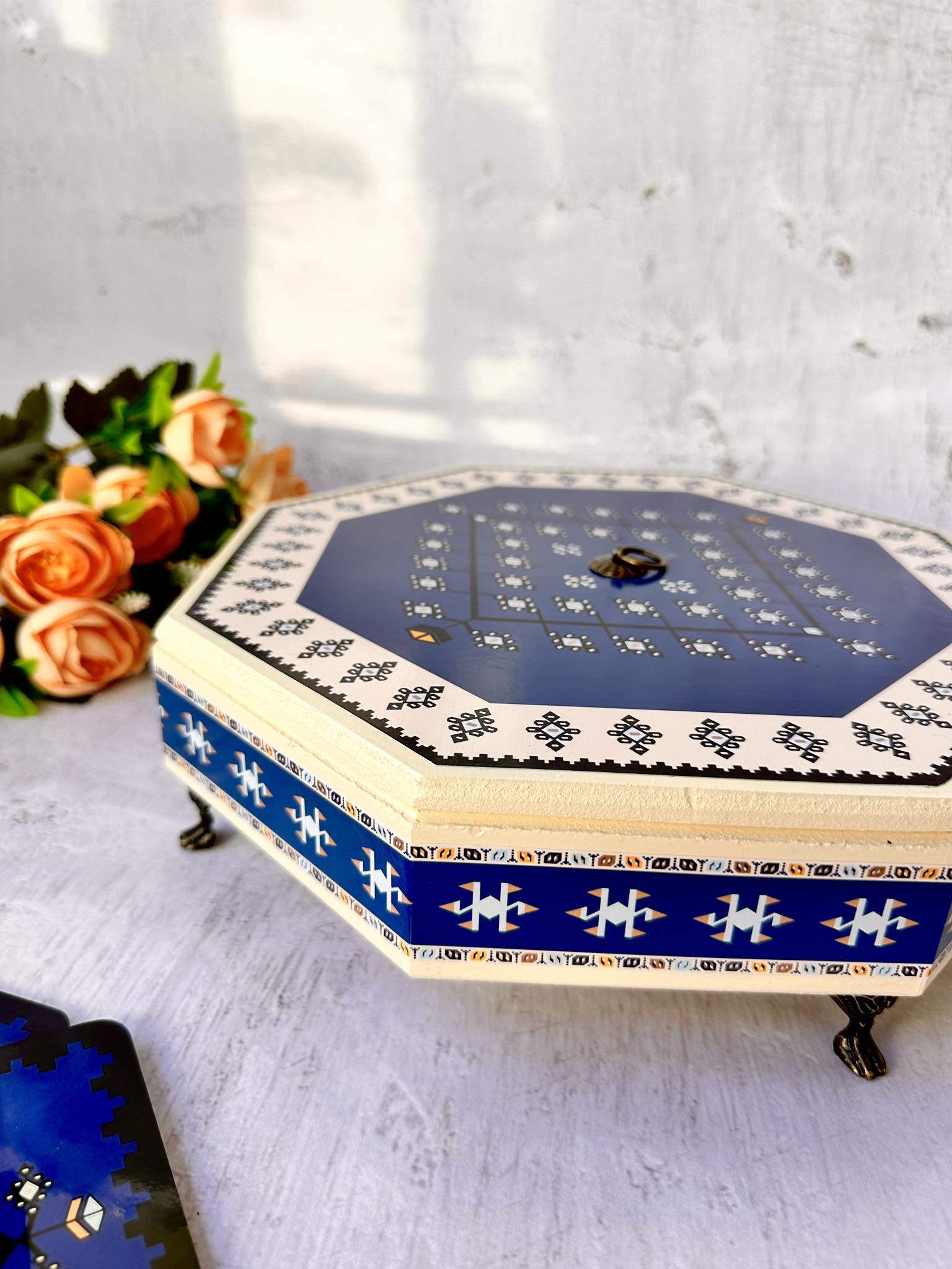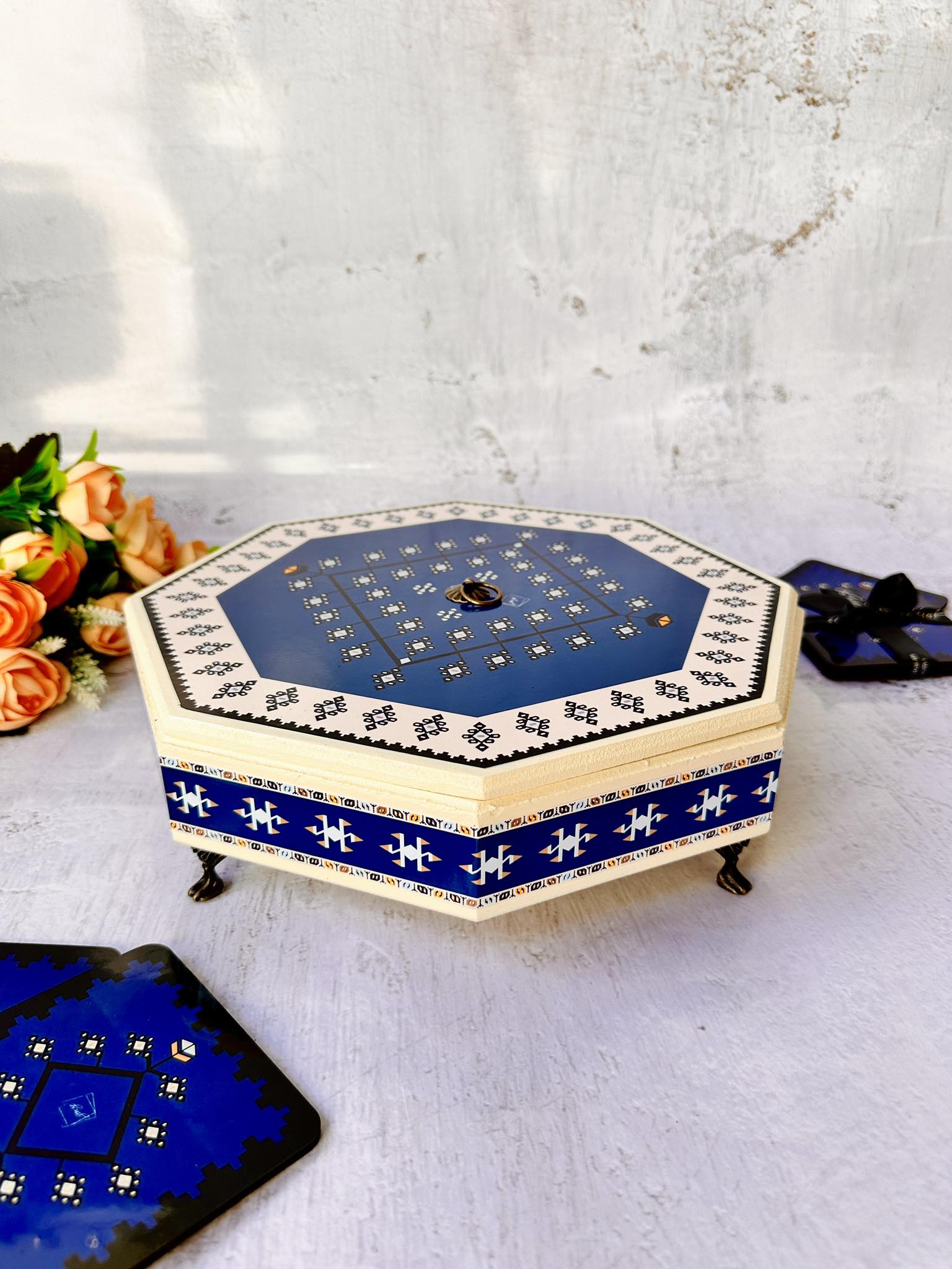 📦 Ambalaža: Svaki bombonjer dolazi upakovan u elegantnu crnu kutiju na čijoj sredini se nalazi mali otvor u obliku kruga kroz koji se nazire dezen ćilima i čini otvaranje poklona još uzbudljivijim.