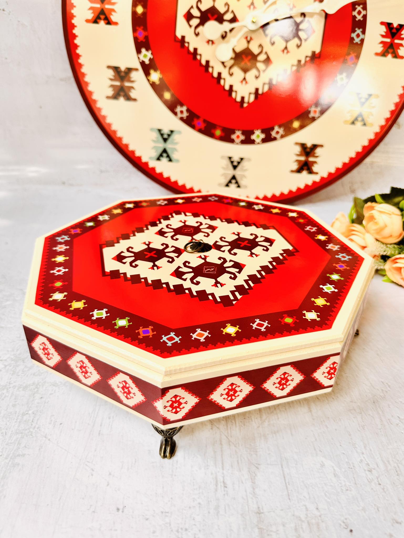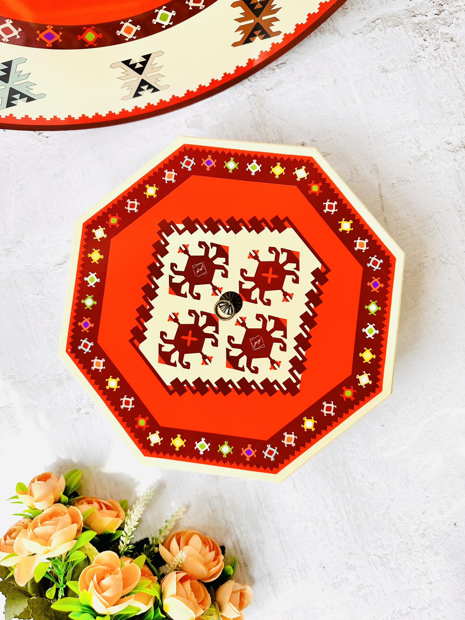📦 Ambalaža: Svaki bombonjer dolazi upakovan u elegantnu crnu kutiju na čijoj sredini se nalazi mali otvor u obliku kruga kroz koji se nazire dezen ćilima i čini otvaranje poklona još uzbudljivijim.