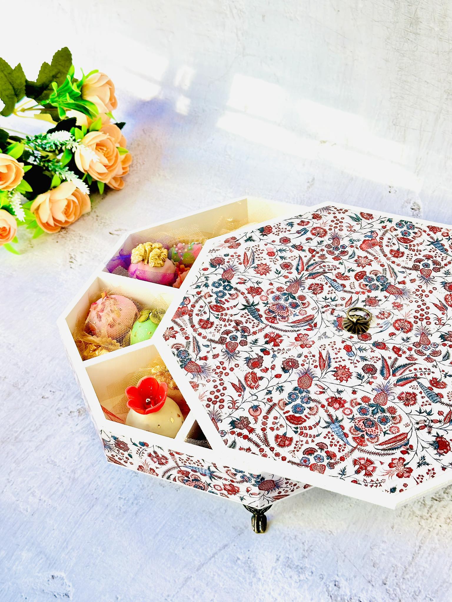 🗂️ Organizer: Ovaj bombonjer učiniti će vaš sto elegantnijim i bogatijim. Njegove razdjelne pregrade omogućavaju vam da organizujete različite poslastice ili sitnice, dok mu poklopac čijem smo dizajnu posvetili posebnu pažnju pruža zaštitu od prašine i ostalih vanjskih uticaja.
