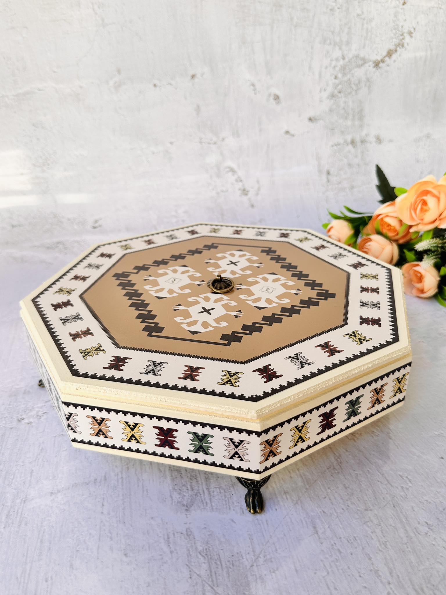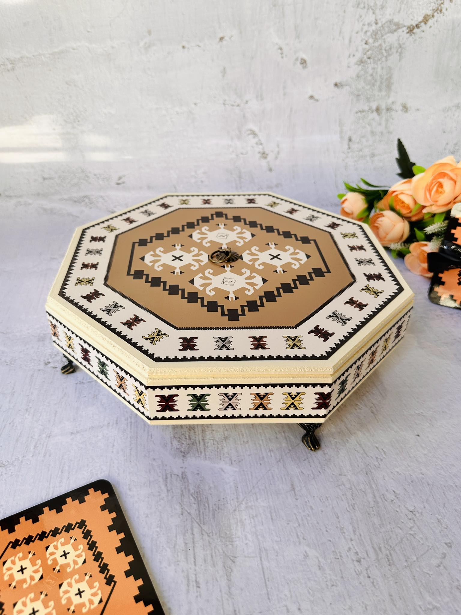 Bonbonnière (fr.) je bio naziv za posude u kojim su se držale bombone.  Bombonjer Toprak je mnogo više od obične kutije za slatkiše. Ona je priča o ljubavi prema Bosni i Hercegovini i pjesma čežnje za njom. 💭 Simbolika motiva na ćilimu Toprak 💭 Toprak je turski izraz za tlo/zemlju a zemljani tonovi na ovom šećerluku donijet će posebnu energiju prirode i mira u tvoj dom. 🌱🐝🌙🪵 Ćilim Toprak obrubljen je kornjačama u nijansama umirujućih bo…