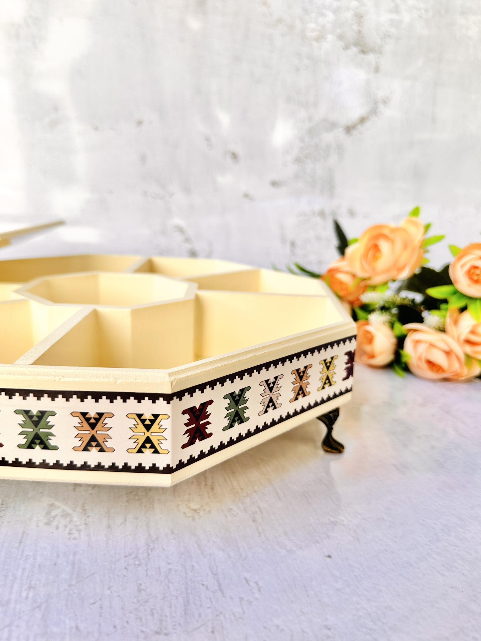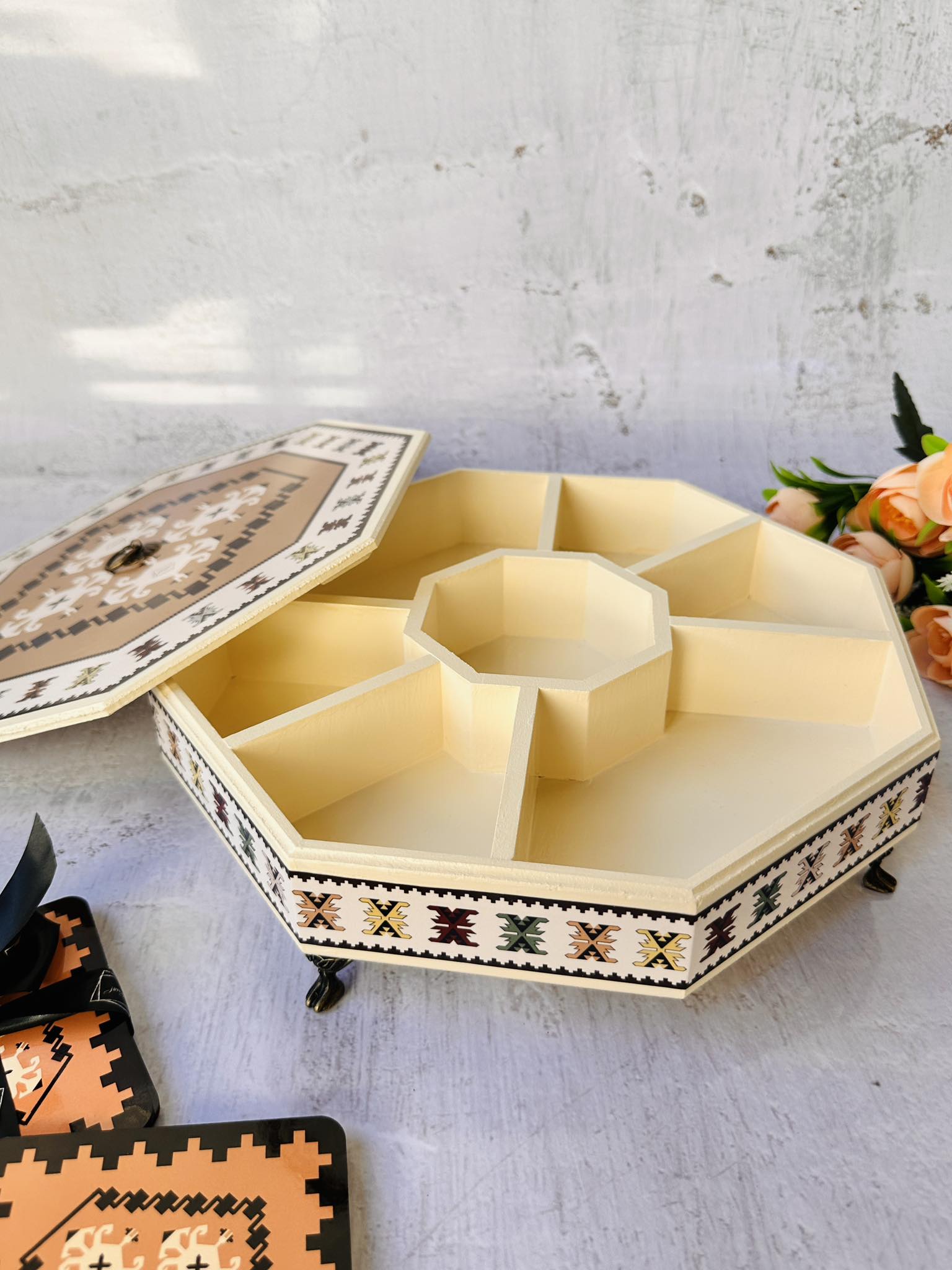 🗂️ Organizer: Ovaj bombonjer učiniti će vaš sto elegantnijim i bogatijim. Njegove razdjelne pregrade omogućavaju vam da organizujete različite poslastice ili sitnice, dok mu poklopac čijem smo dizajnu posvetili posebnu pažnju pruža zaštitu od prašine i ostalih vanjskih uticaja.