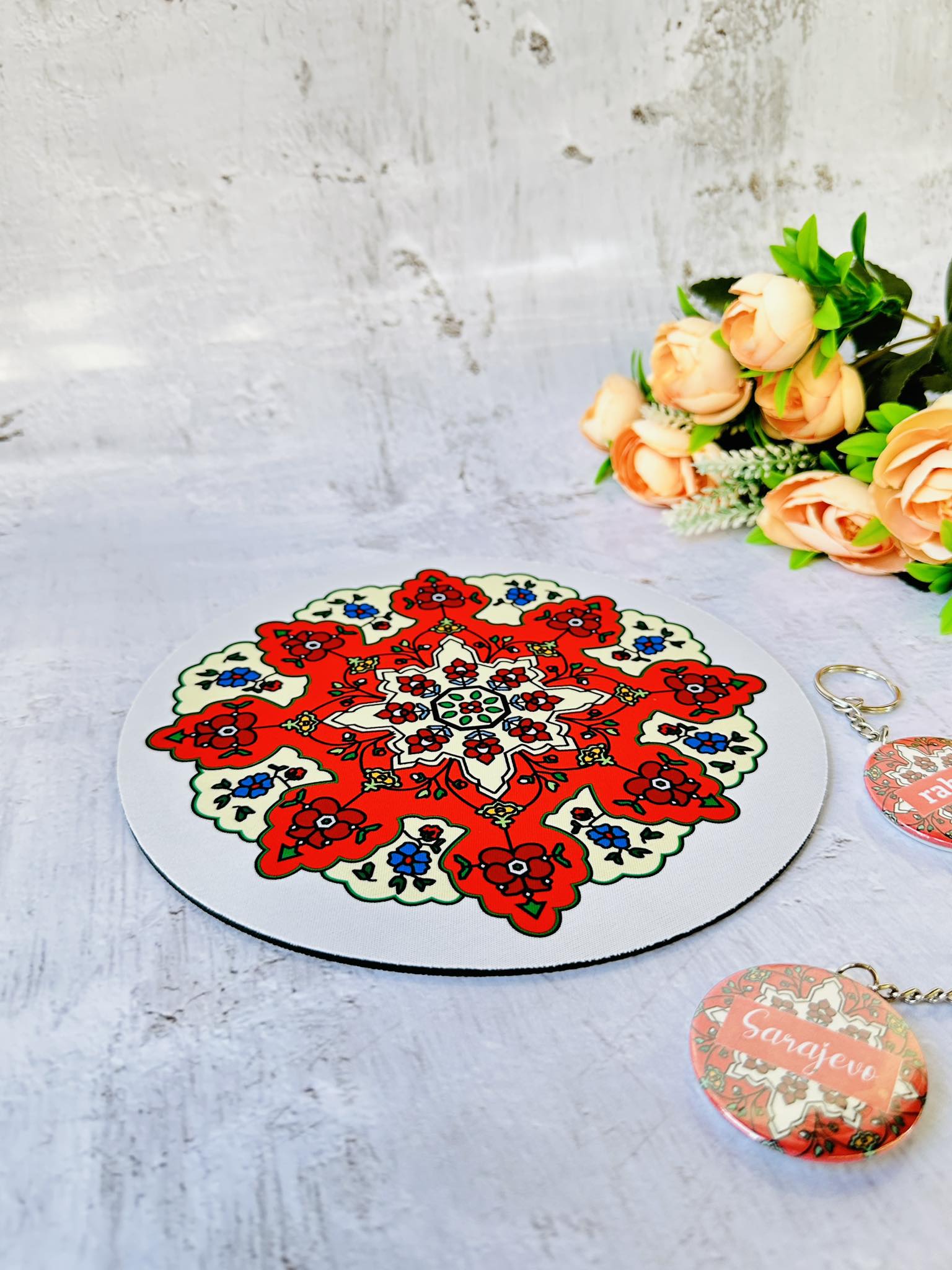 Naša podloga za miš u dezenu bosanskog ćilima nije samo funkcionalna, već i pravo umjetničko djelo koje će osvježiti bilo koji radni prostor donoseći mu djelić Bosne. 🇧🇦