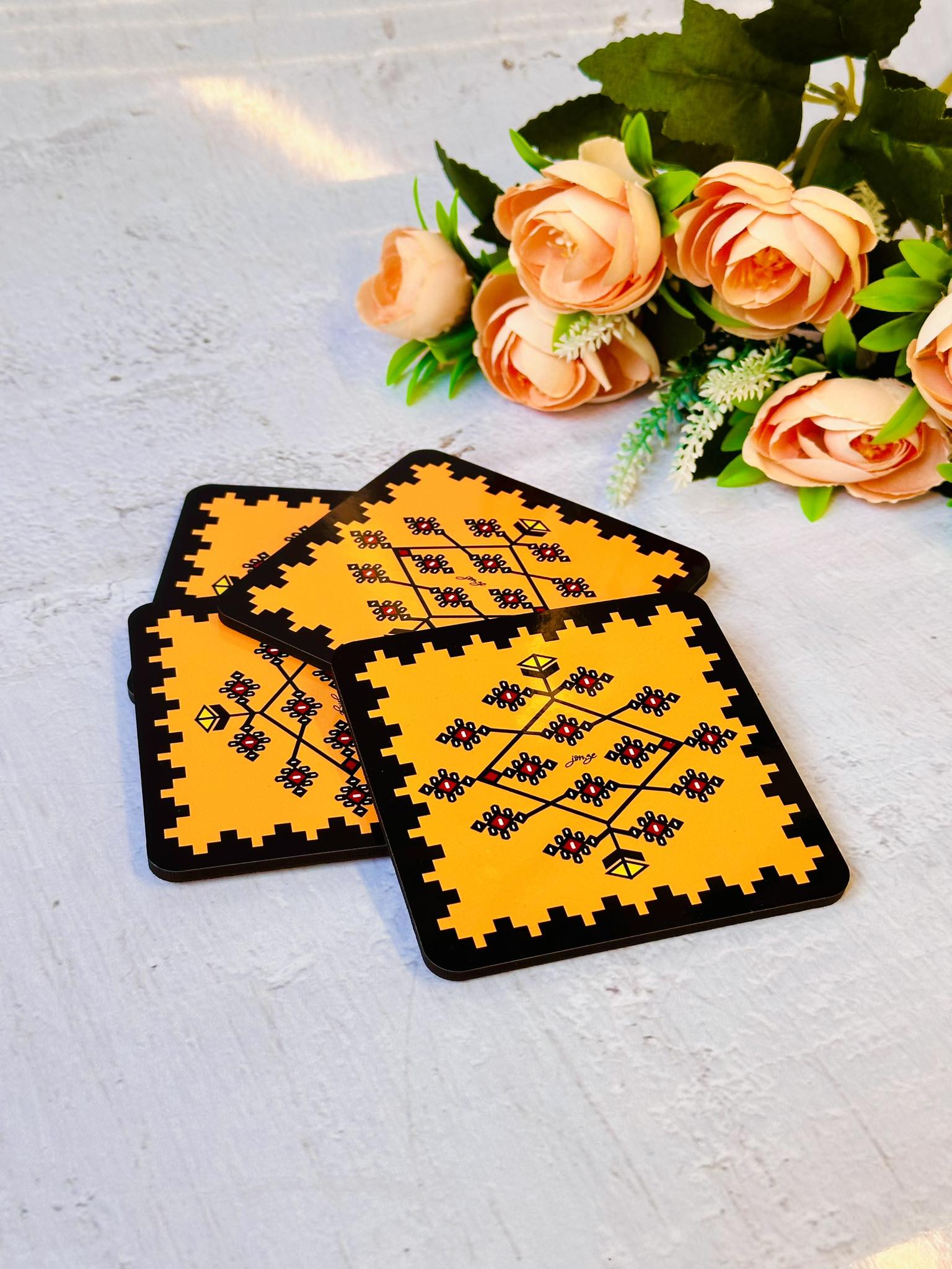Jonze podmetači za čaše izrađeni su od kombinacije prirodnog pluta i održive plastike, a inspirisane bogatom tradicijom bosanskih ćilima.