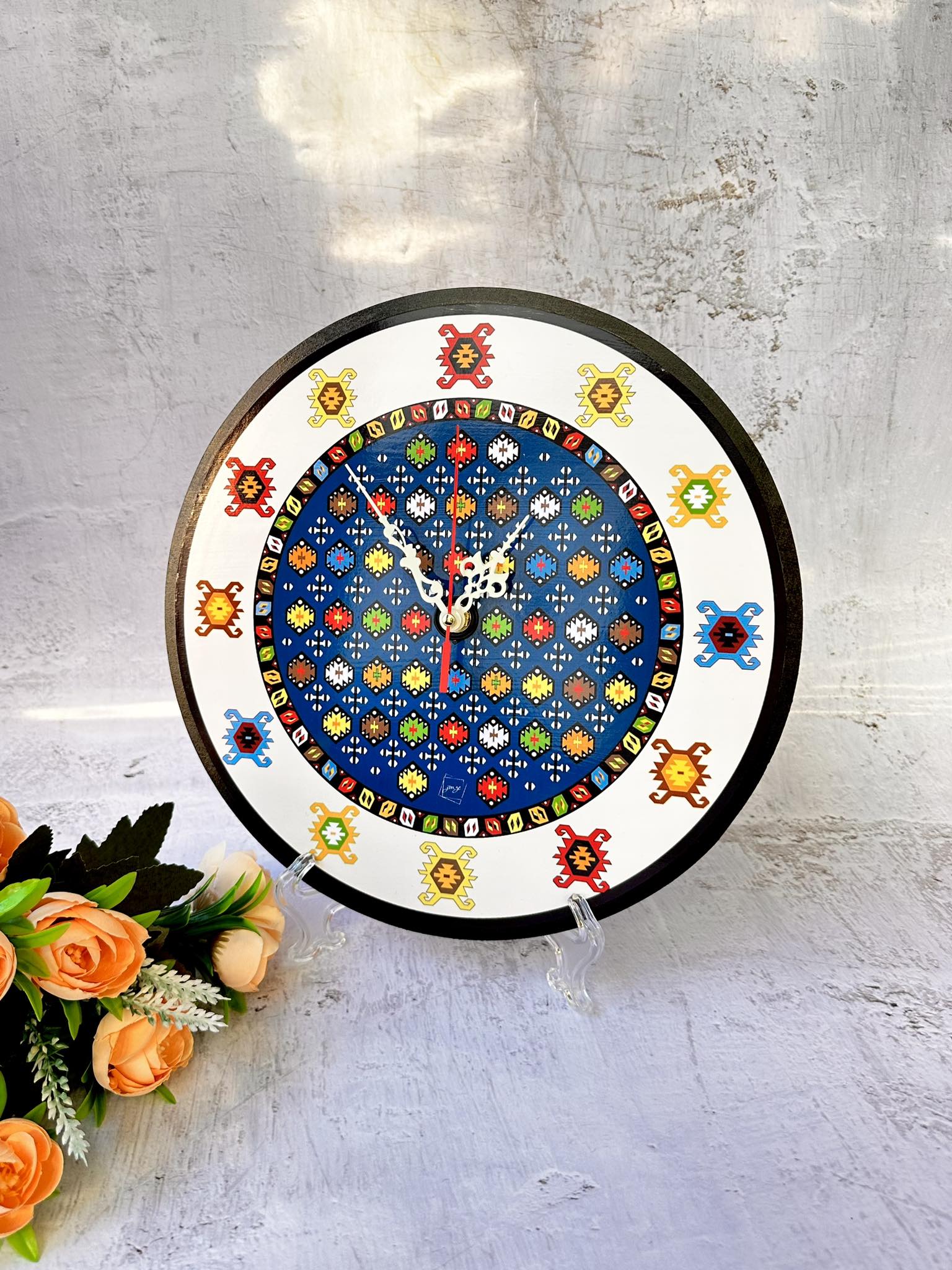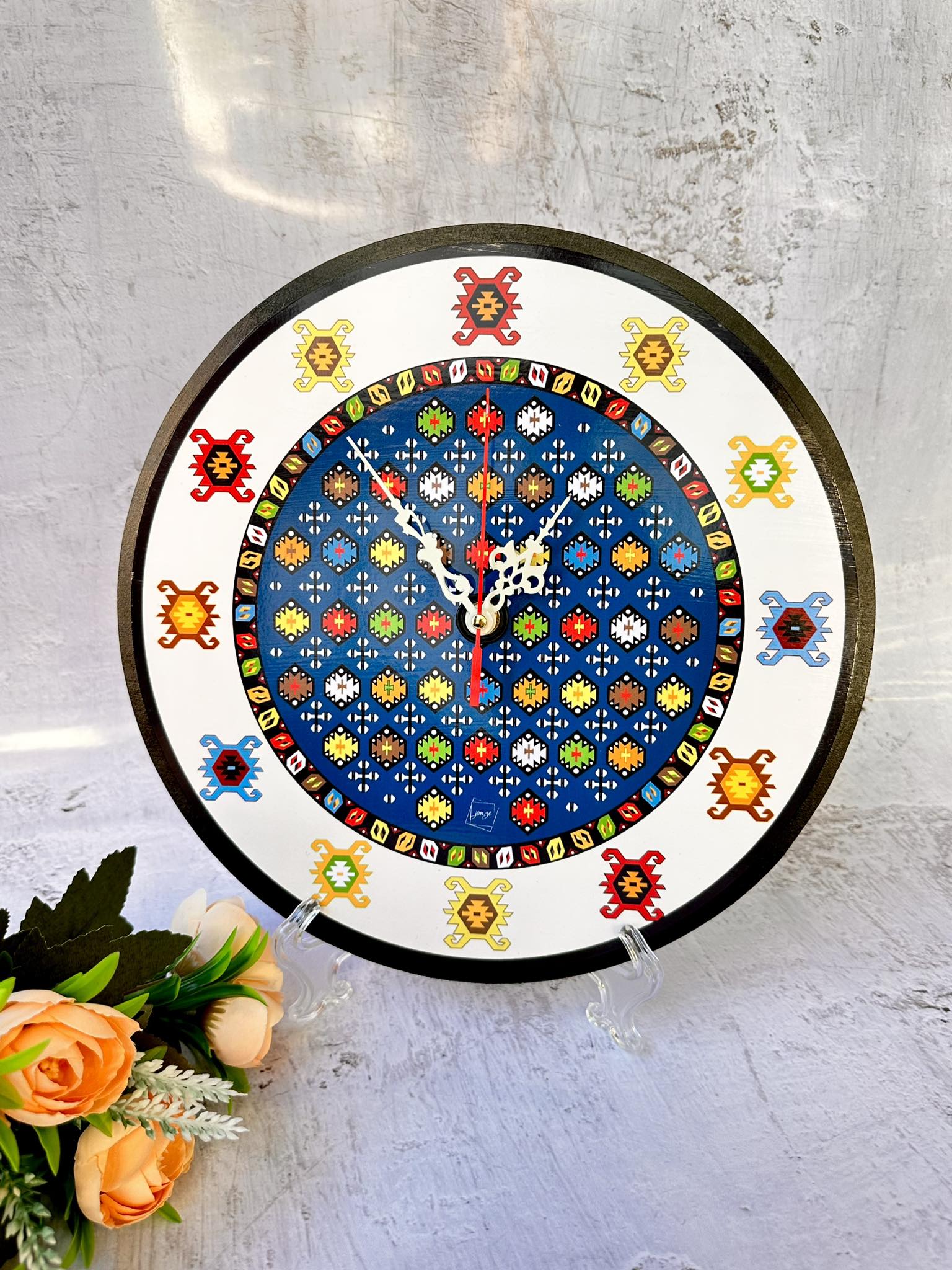 - Autentičan dizajn: Svaki sat je pažljivo dizajniran kako bi zadržao autentičnost i ljepotu tradicionalnih bosanskih ćilima. Svaki dezen nosi simboliku i priču, što čini ove satove više od običnih vremenskih uređaja.