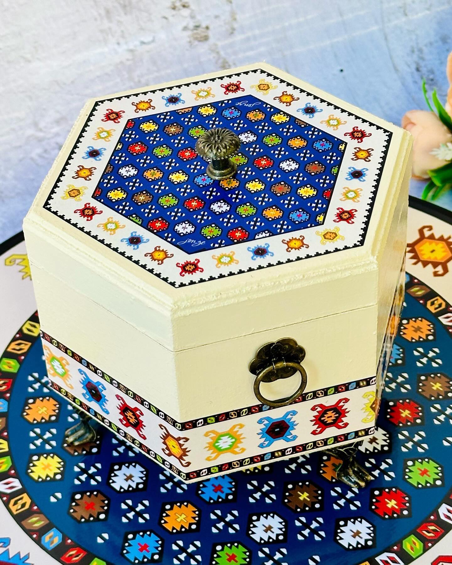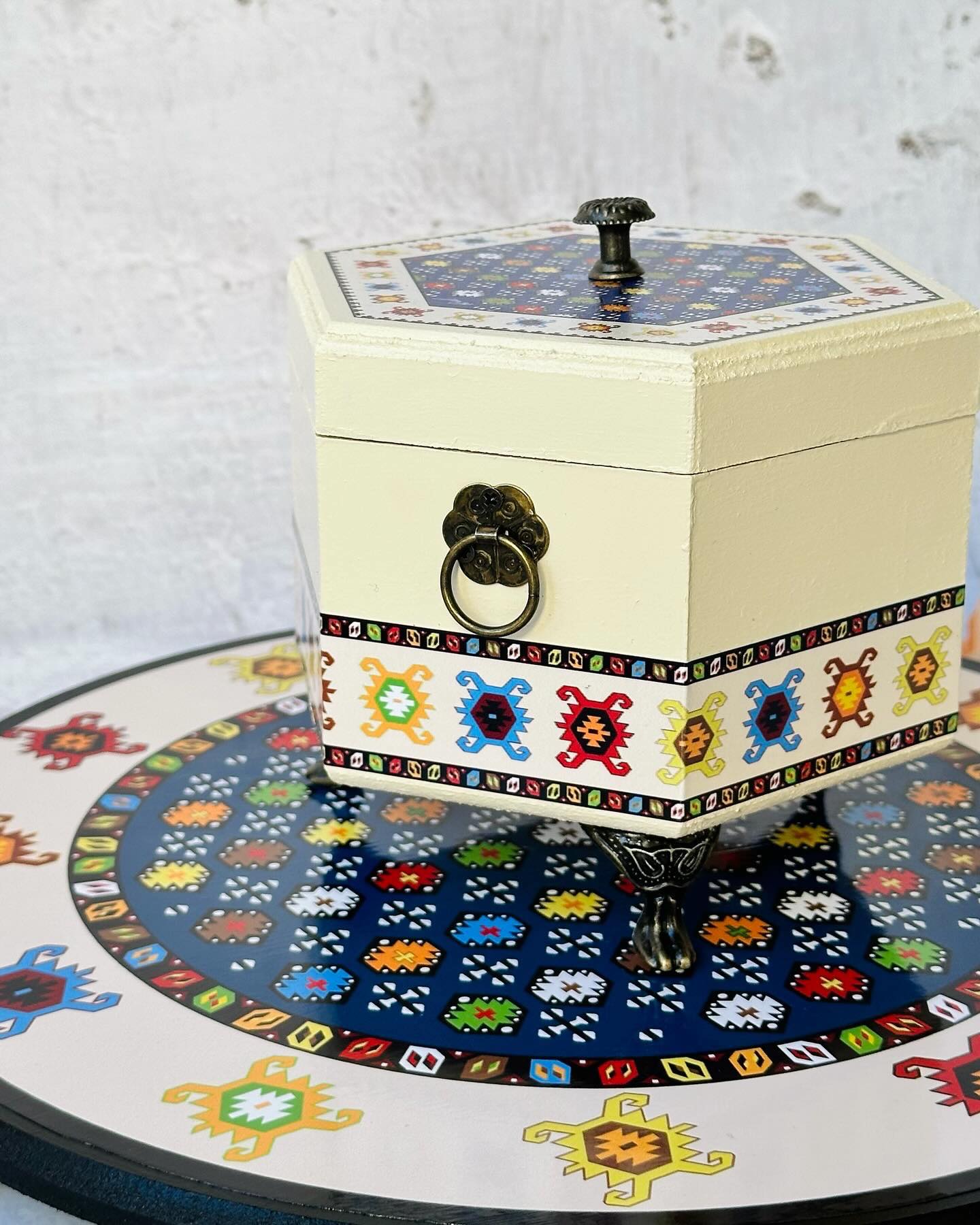 📦 Ambalaža: Svaki šećerluk dolazi upakovan u elegantnu crnu kutiju na čijoj sredini se nalazi mali otvor u obliku kruga kroz koji se nazire dezen ćilima i čini otvaranje poklona još uzbudljivijim.