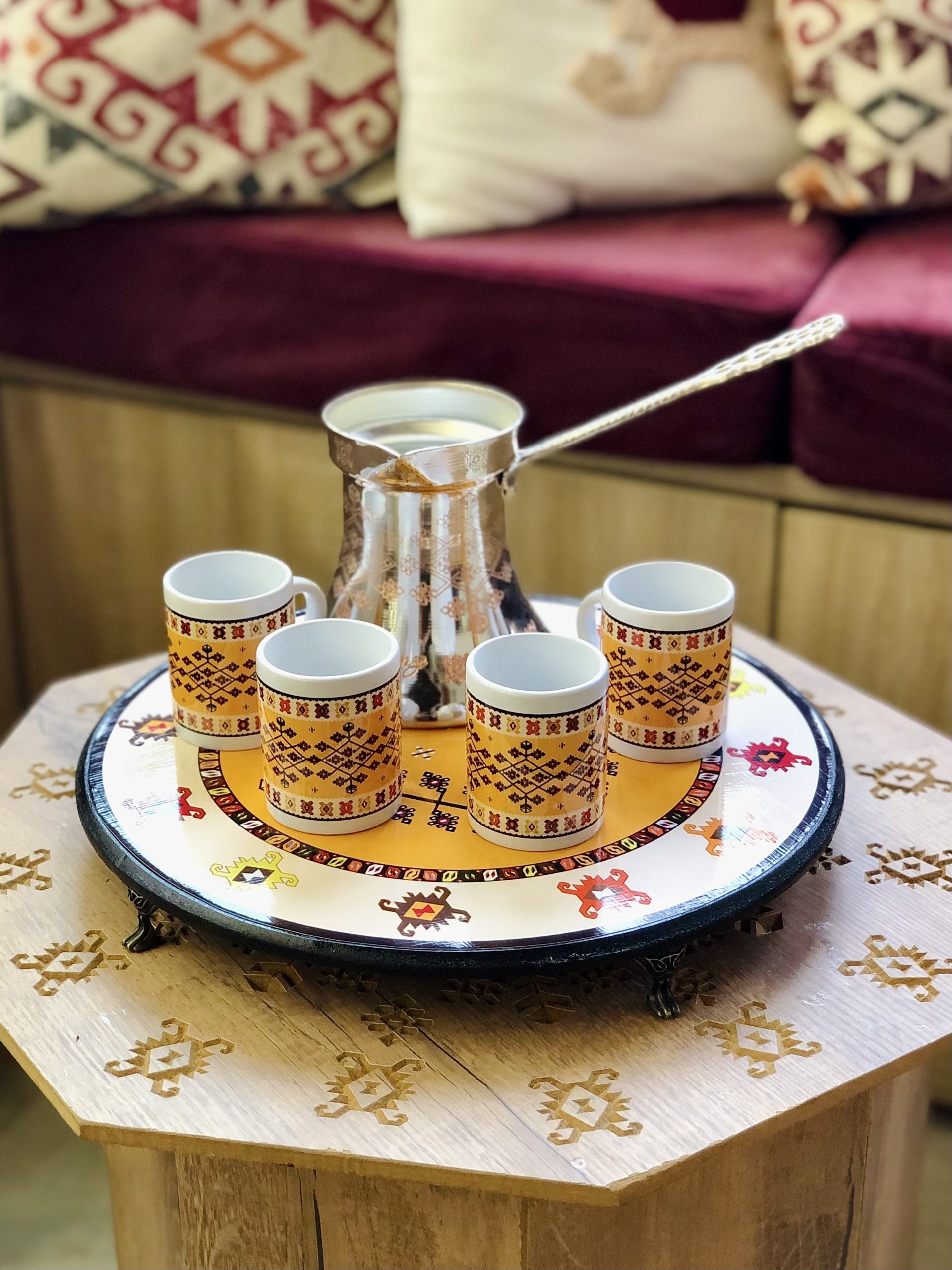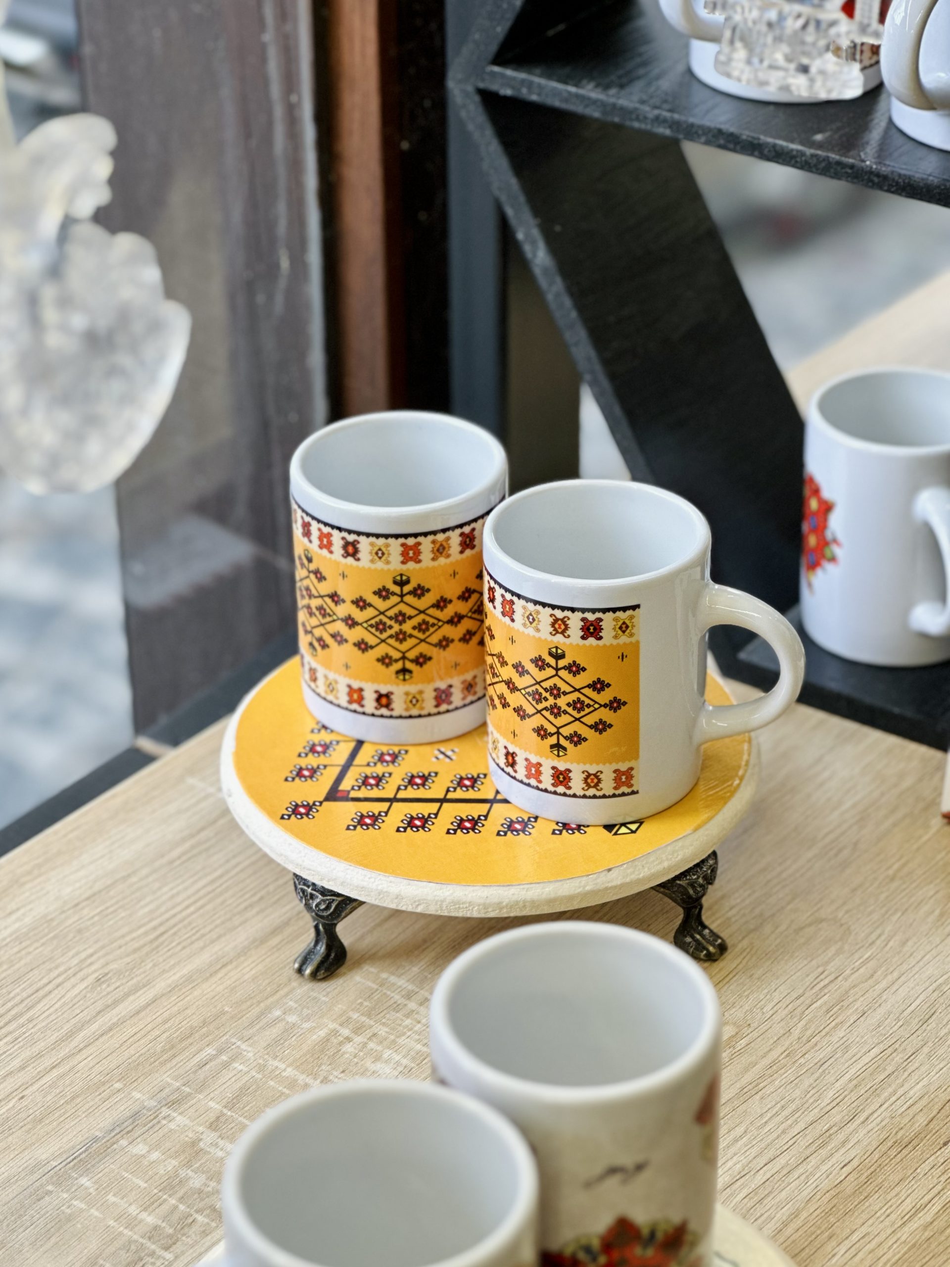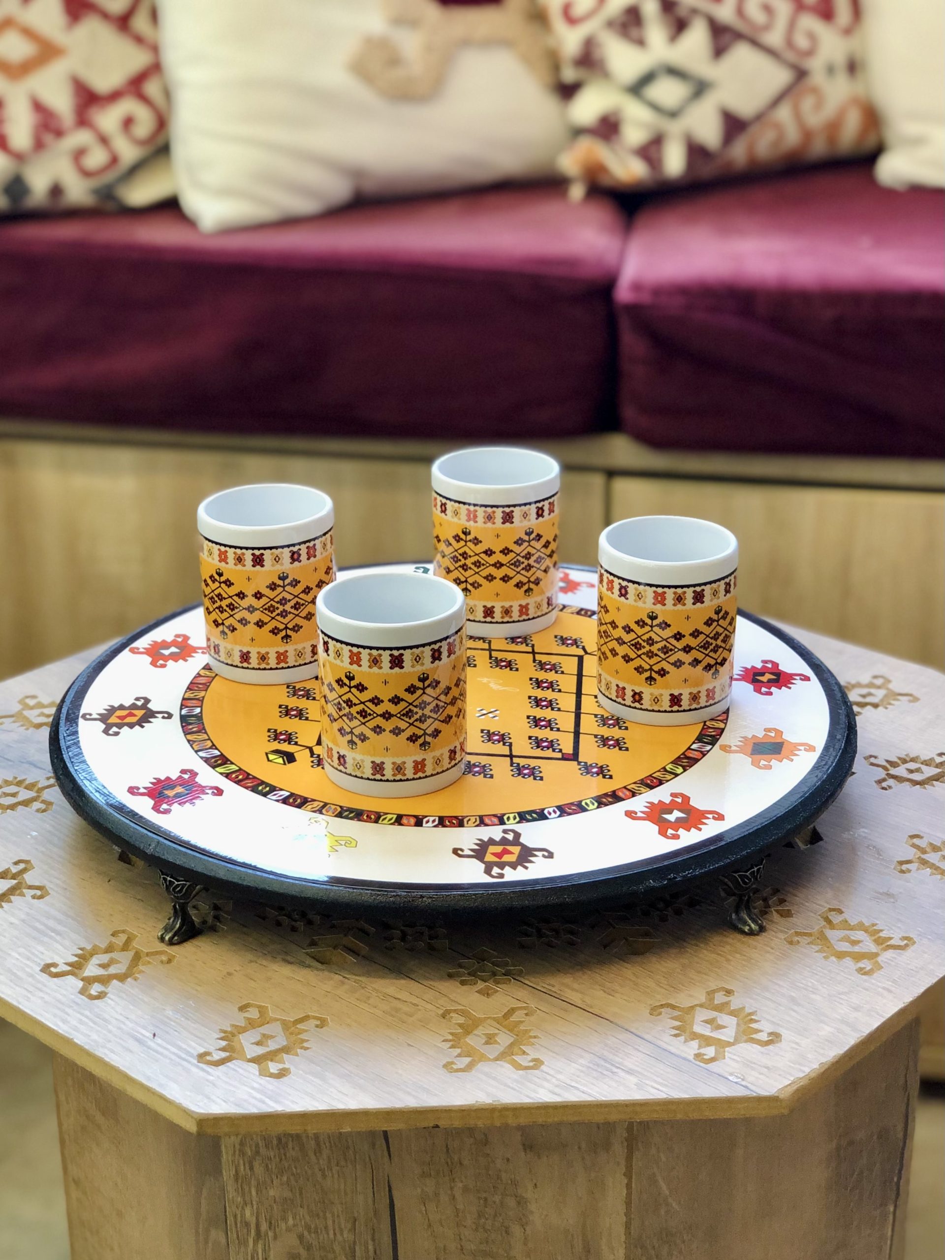 Jedinstven spoj boja i tradicionalnih motiva čini ovaj komplet idealnim za dom i druženja.