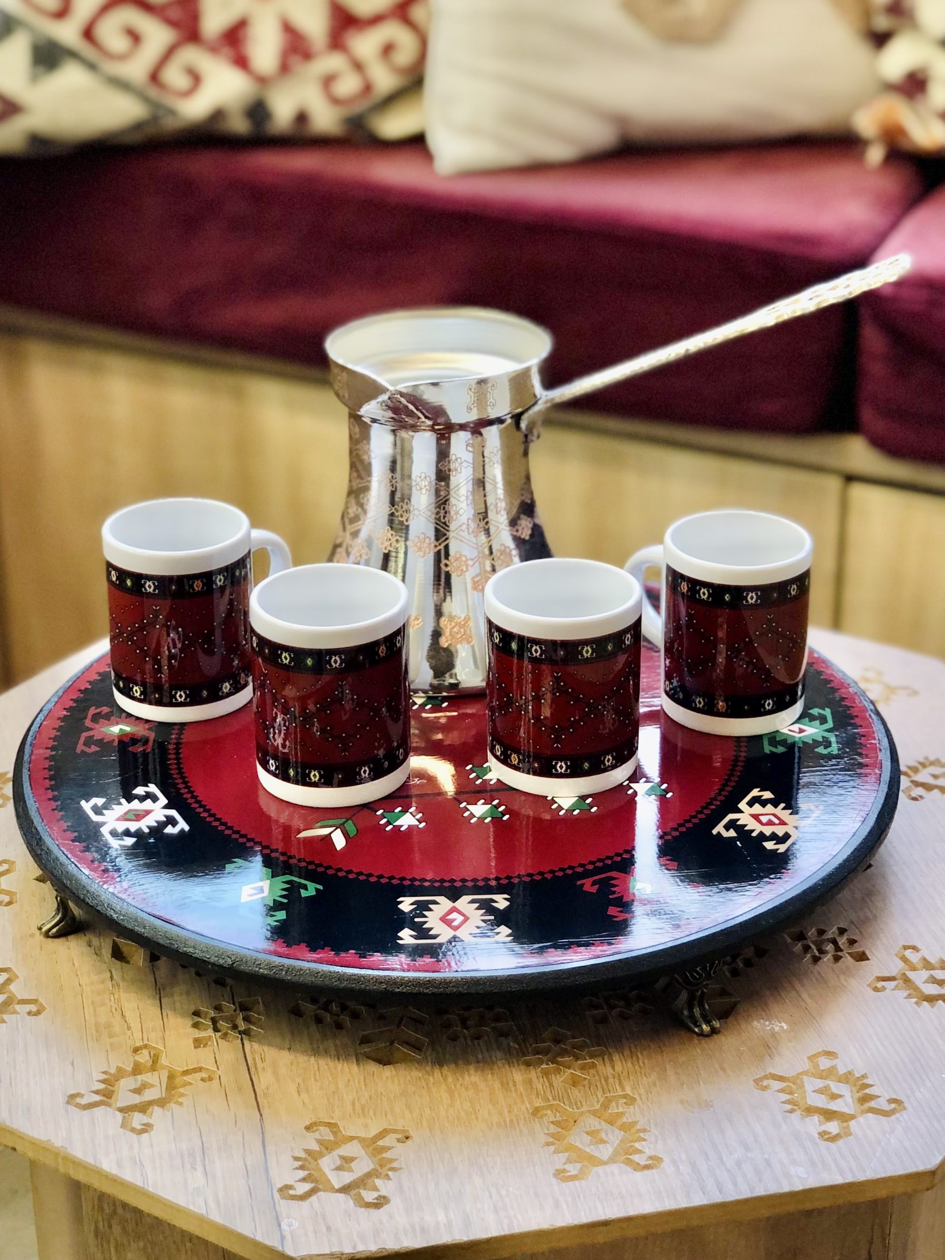 Spoj tradicije i simbolike u Setu za kahvenisanje Petrovački ćilim unosi dušu bosanskog ćilima direktno u vaš dom.