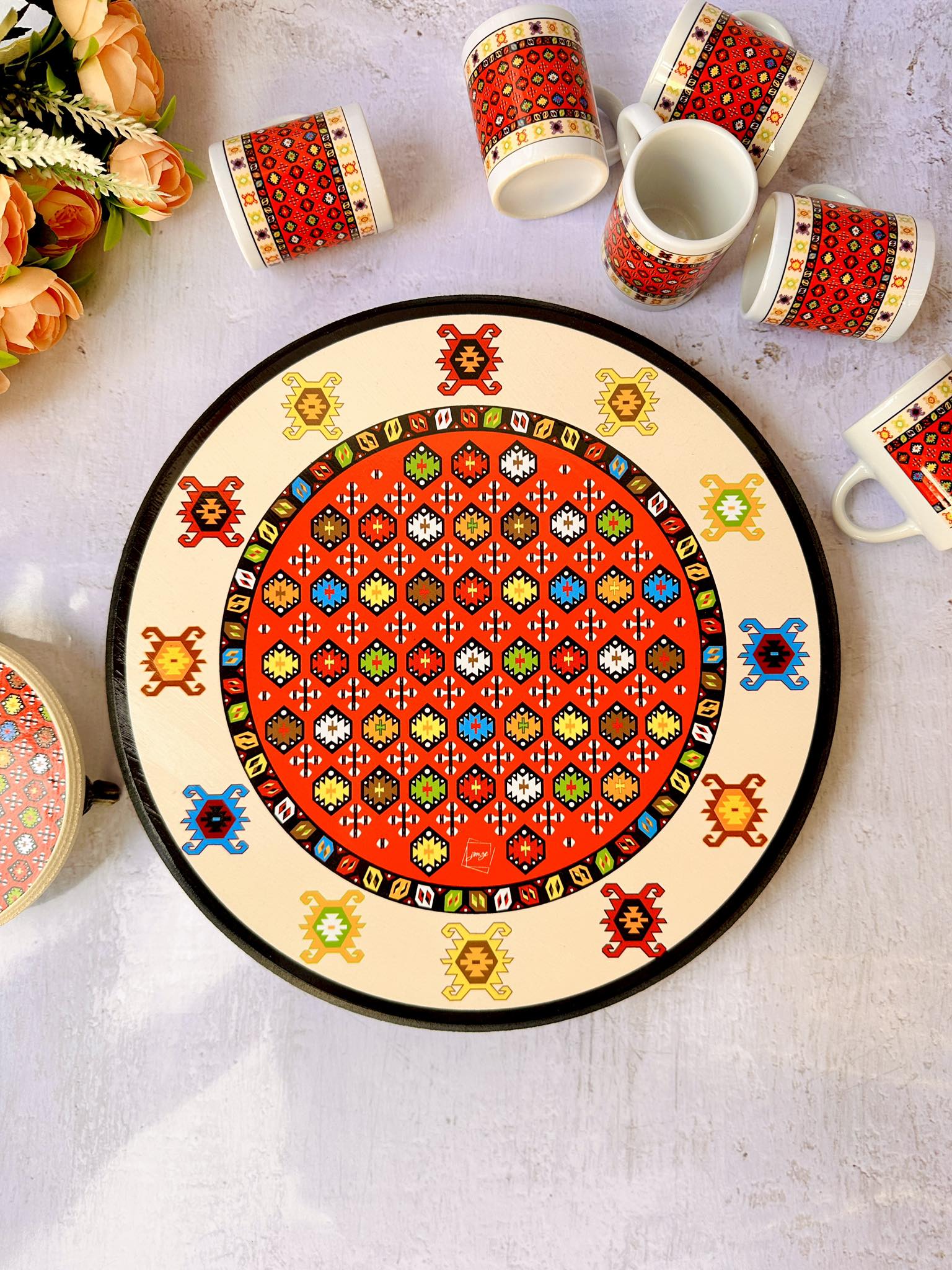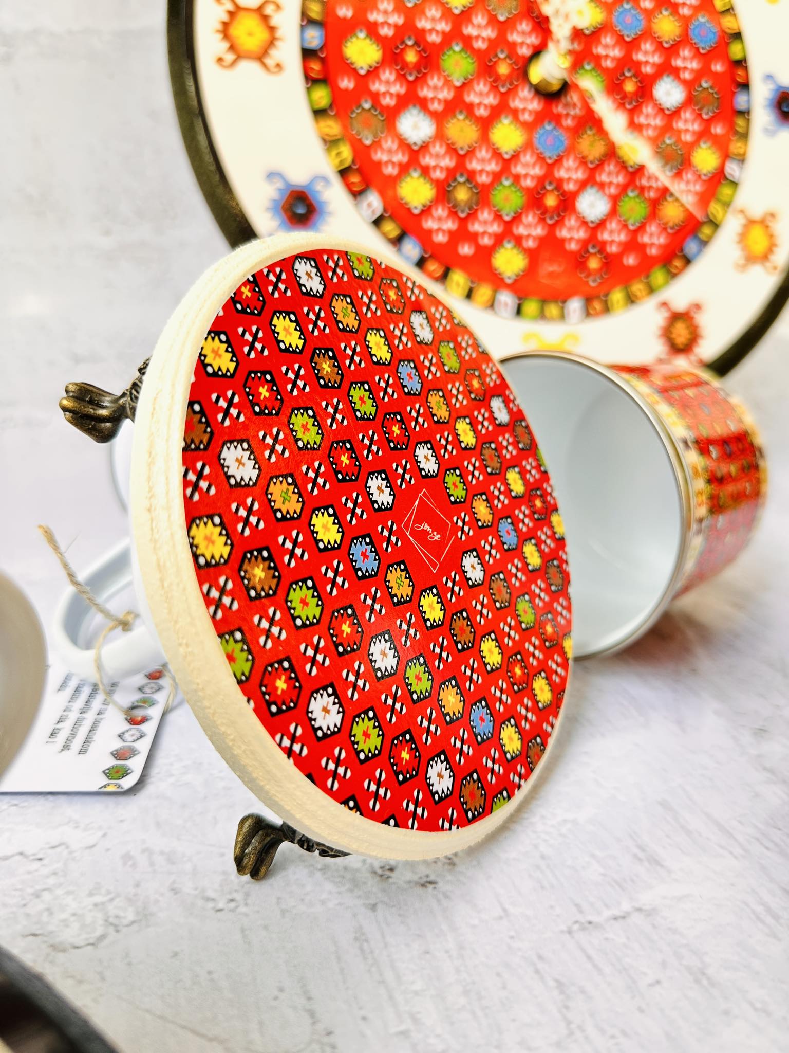 📦 Ambalaža: Svaka sinija dolazi upakovana u elegantnu crnu kutiju na čijoj sredini se nalazi mali otvor u obliku kruga kroz koji se nazire dezen ćilima i čini otvaranje poklona još uzbudljivijim.