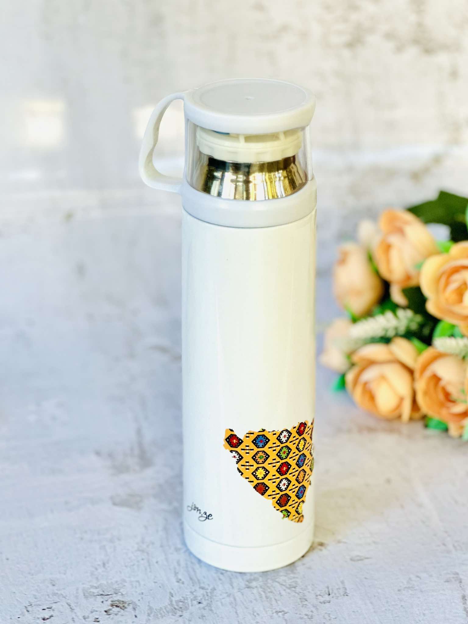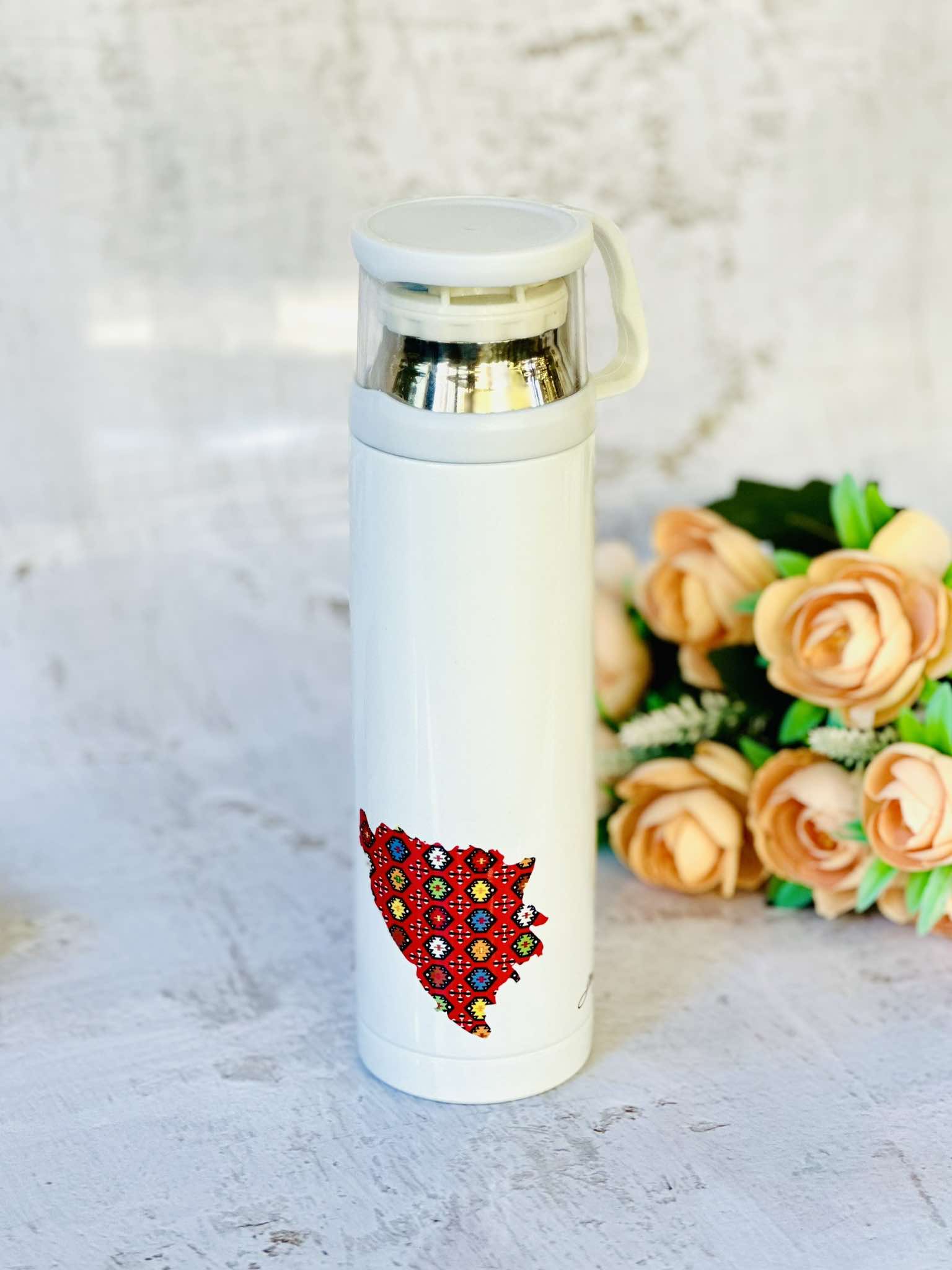 Uživajte u savršenom napitku bilo gdje, bilo kada, uz Jonze termos bocu koja dolazi s inovativnom čašicom umjesto čepa. Dizajnirana da zadrži i toplo i hladno piće čak 24 sata, ova boca je idealna za putovanja, posao, ili aktivnosti na otvorenom. Bilo da želite sačuvati toplinu svoje kafe ili hladnoću osvežavajućeg napitka, Jonze termos boca osigurava maksimalnu funkcionalnost i praktičnost. Ključne karakteristike: 🌡 Termoizolacija najvišeg nivoa: Naša termos boca održava tvoje napitke vrućim, ali i hladnim duže vrijeme. Bilo da je u pitanju topao napitak za podizanje energije ili osvježavajući hladni napitak, ova boca će zadržati idealnu temperaturu. 🍶 Robustan dizajn: Izrađena od visokokvalitetnih materijala, naša termos boca je izdržljiva, ali i lagana, idealna za nošenje u torbi, ruksaku ili automobilu. Zapremina boce je 500 ml. 🧽 Održavanje: Pogodna je za mašinsko pranje. 🎁 Izvanredan poklon: Ukoliko tražite nešto što biste ponijeli sa sobom kao suvenir u inostranstvo, a pritom nemate mnogo mjesta u svom prtljagu – termos boca je odlična ideja. Također idealan je poklon za ljubitelje umjetnosti, bosanske tradicije, kulture i zdravog stila života. Tvoj omiljeni napitak je uvijek pri ruci s našom termos bocom. Oslobodi se ograničenja i ponesi piće u svom djeliću Bosne gdje god krenula.